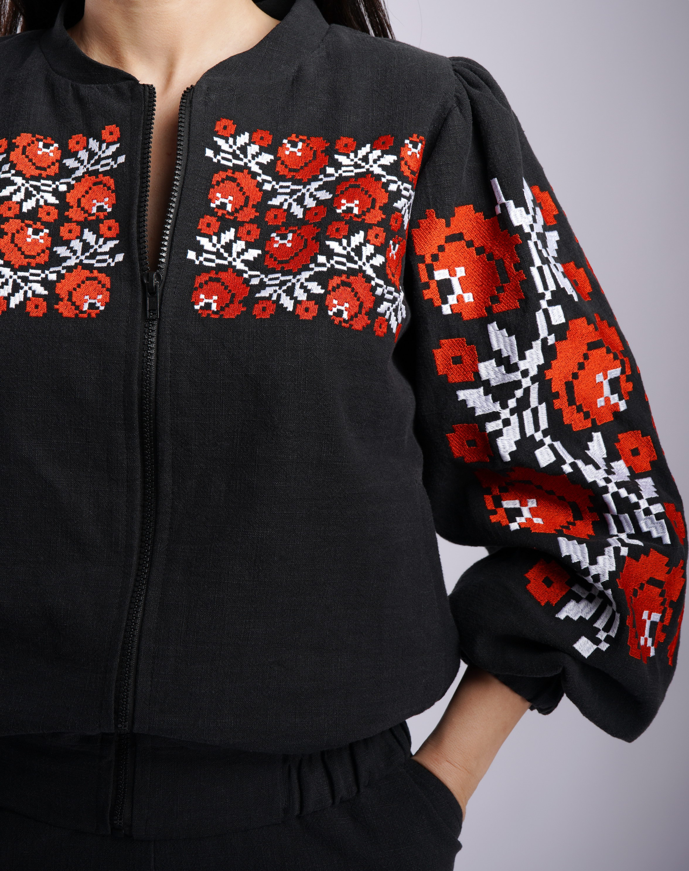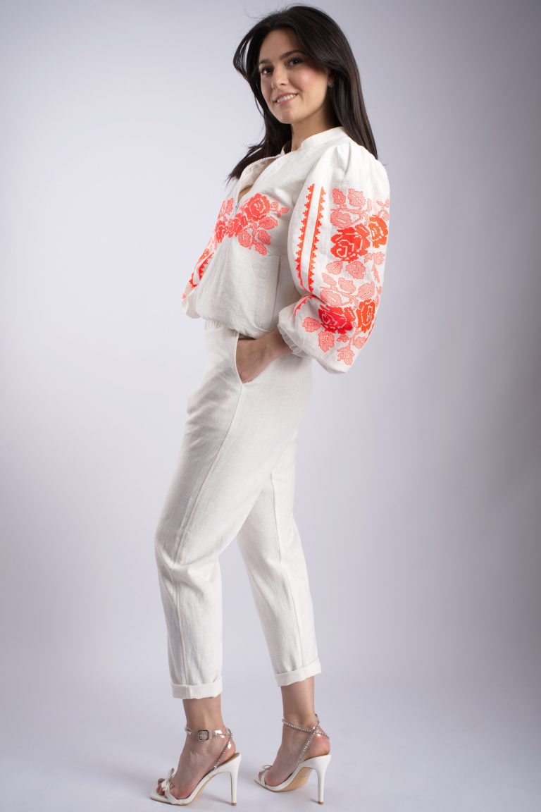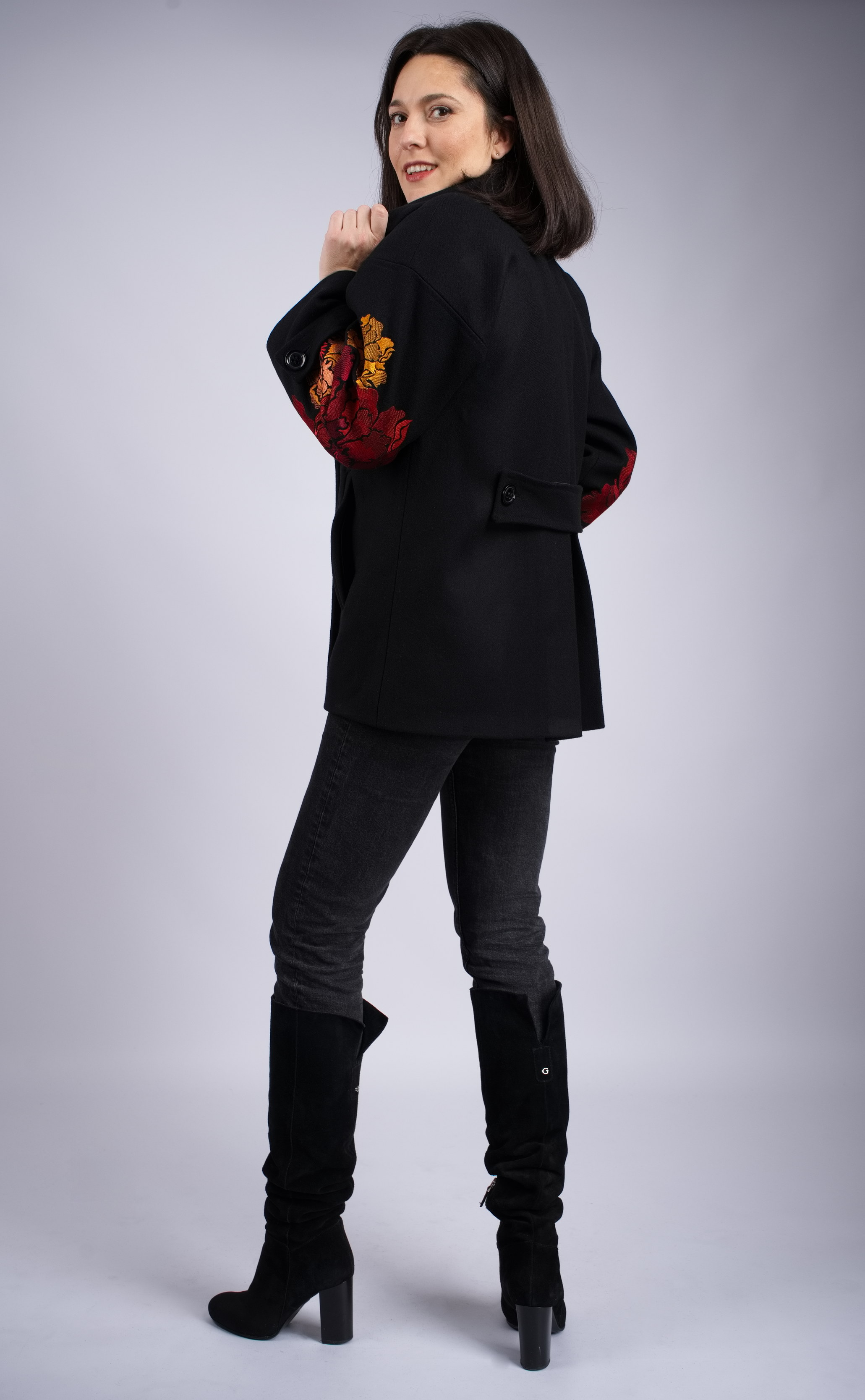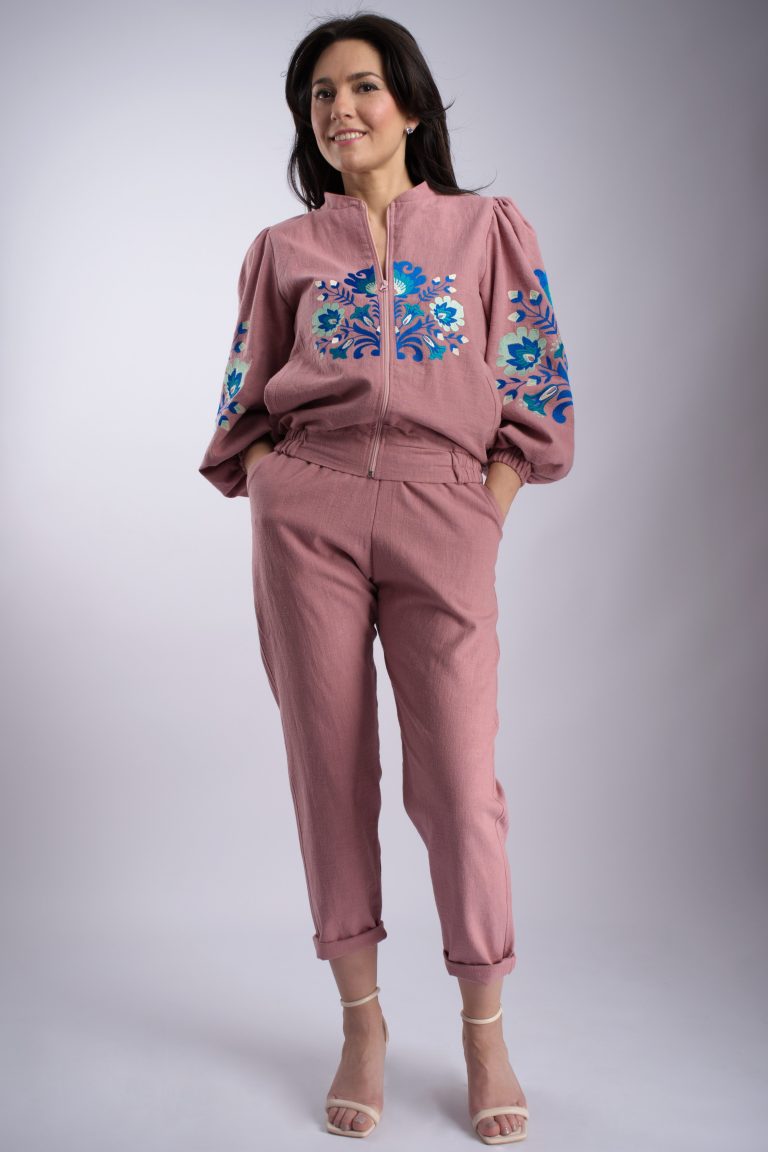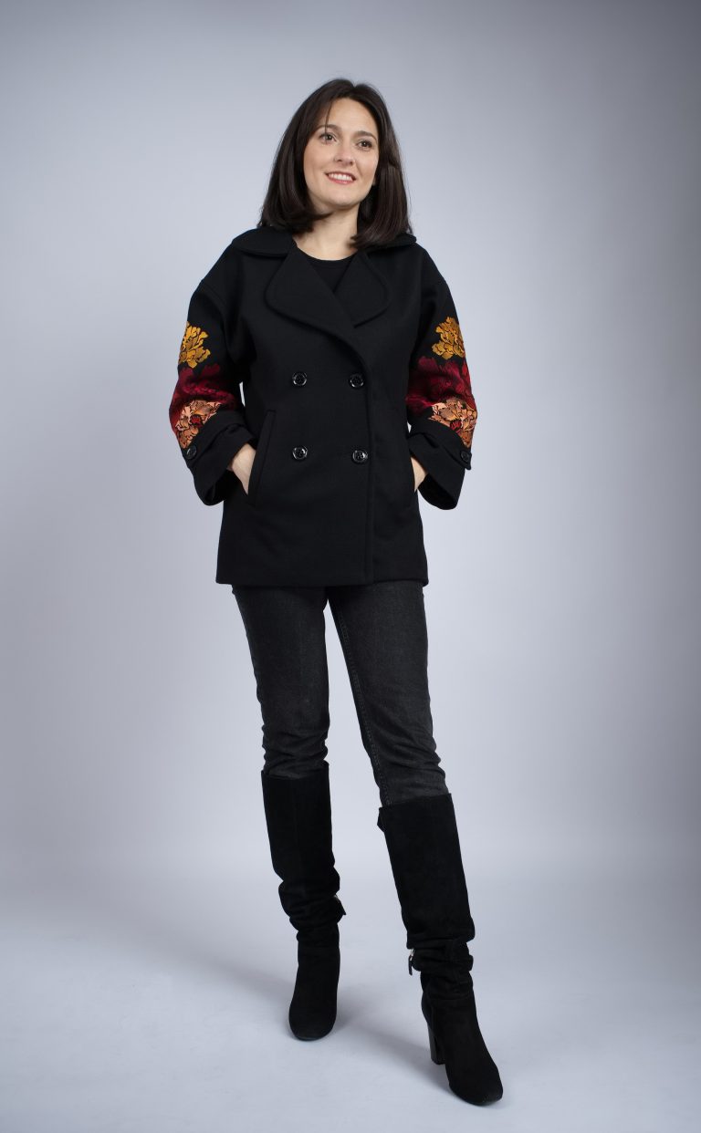 Jaketă Mirelle, din lână, broderie fuxia